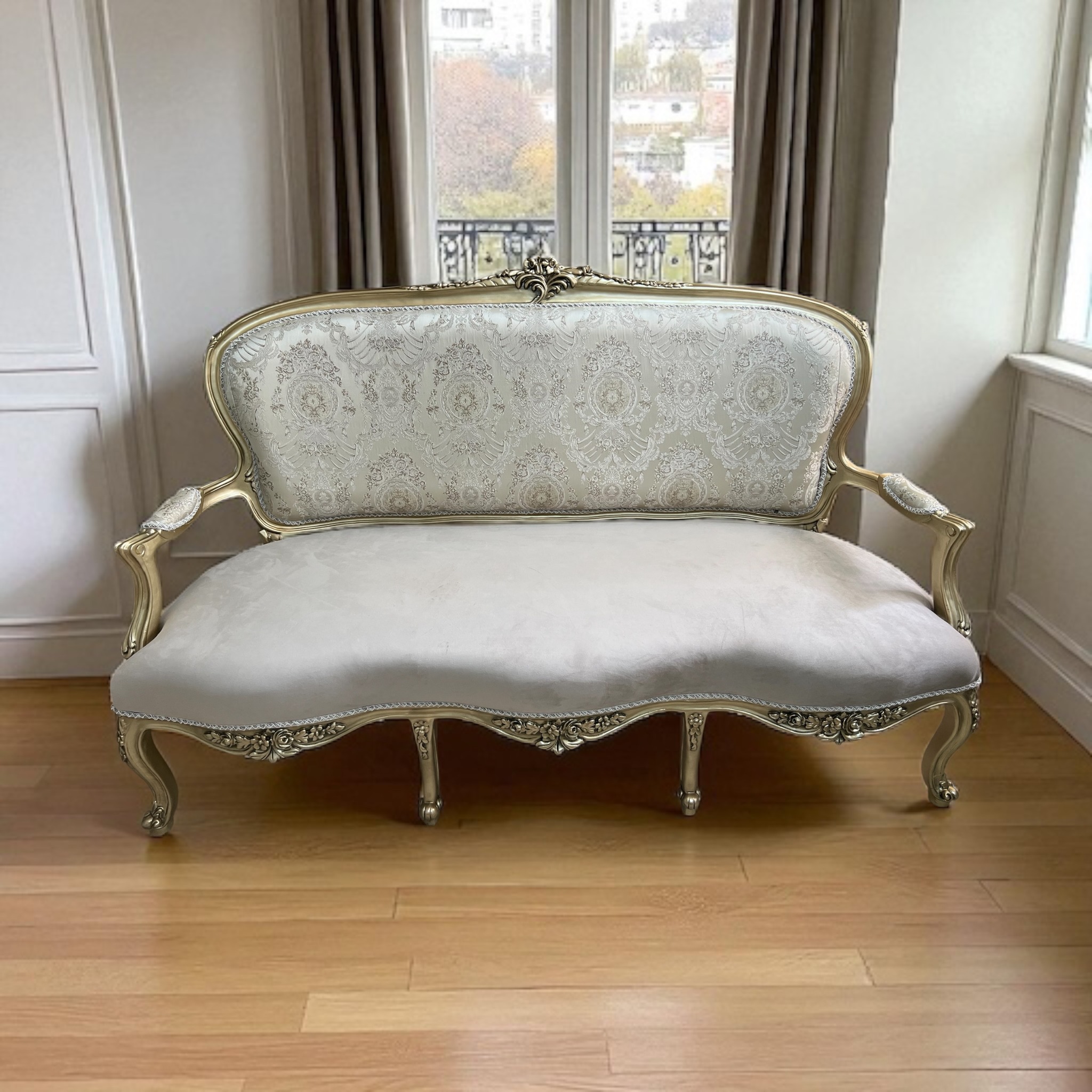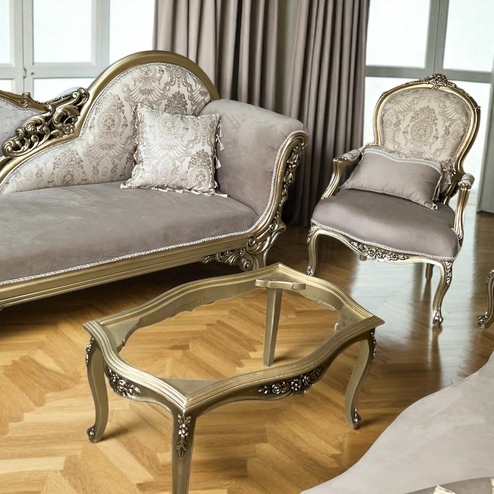 French Style sofa set -Solid Wood With Center Table